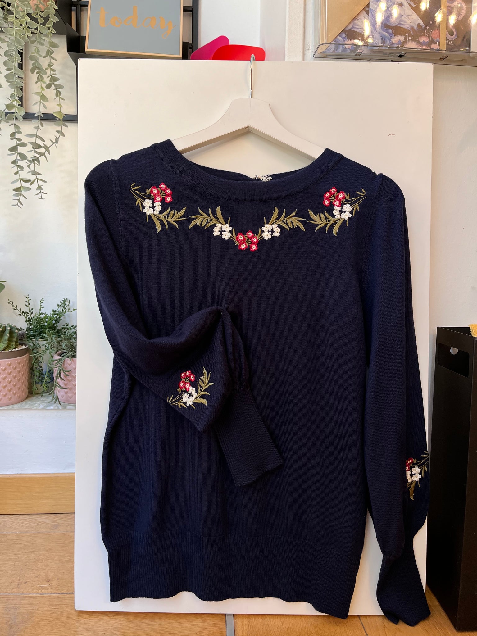 Un maglioncino delizioso in stile vintage in viscosa e nylon, girocollo e manica con polsino lungo. Vestibilità regolare.