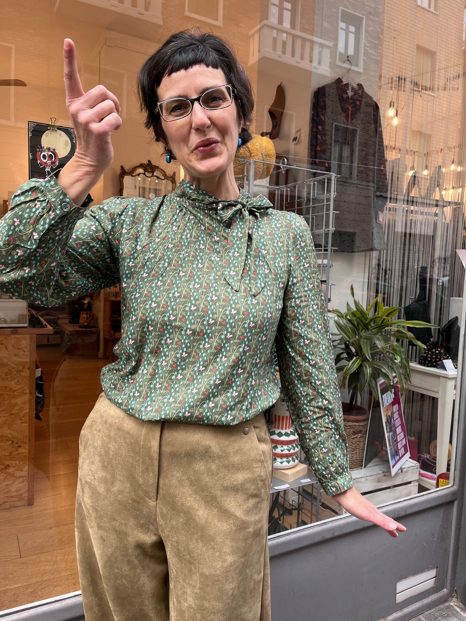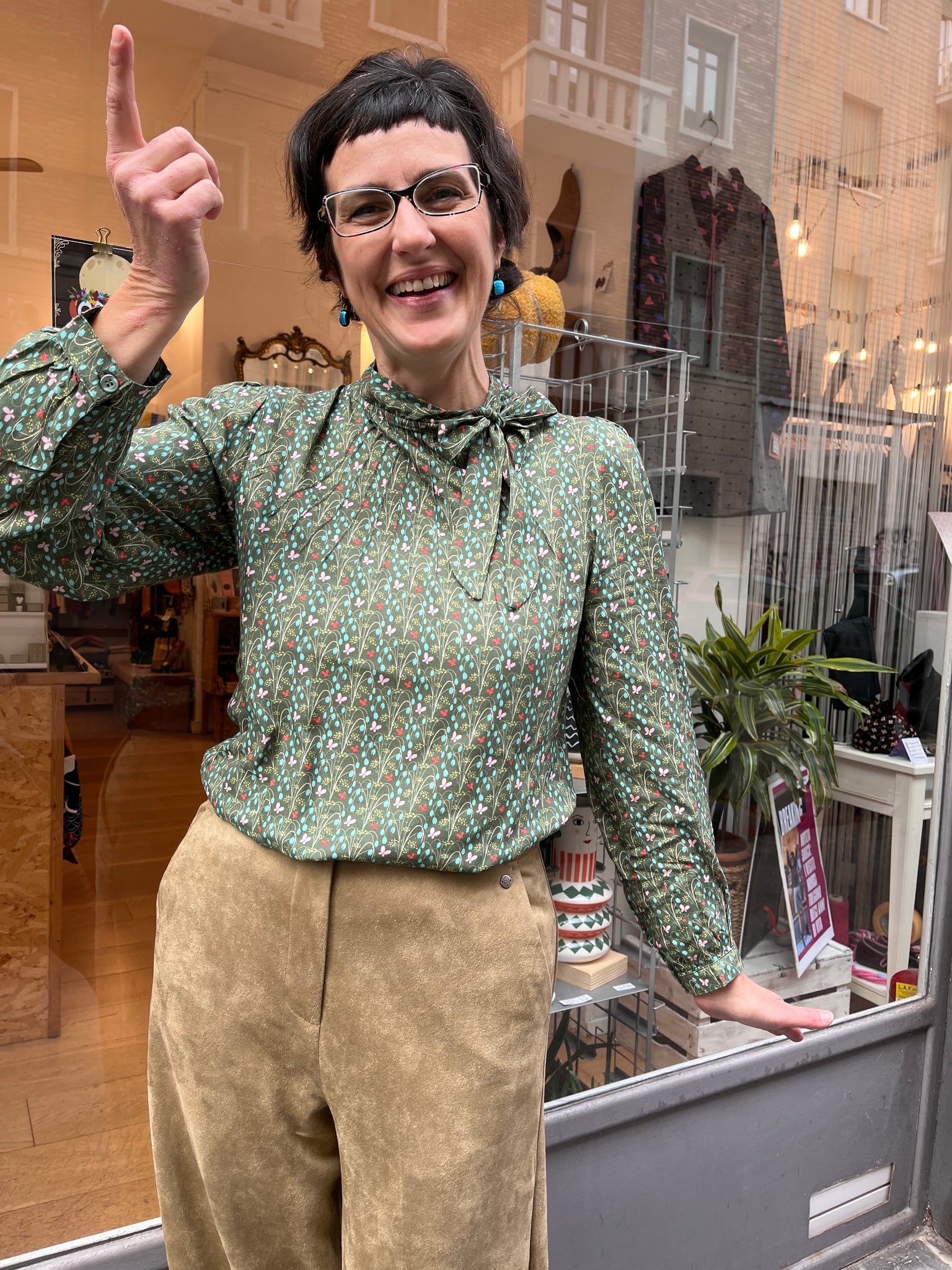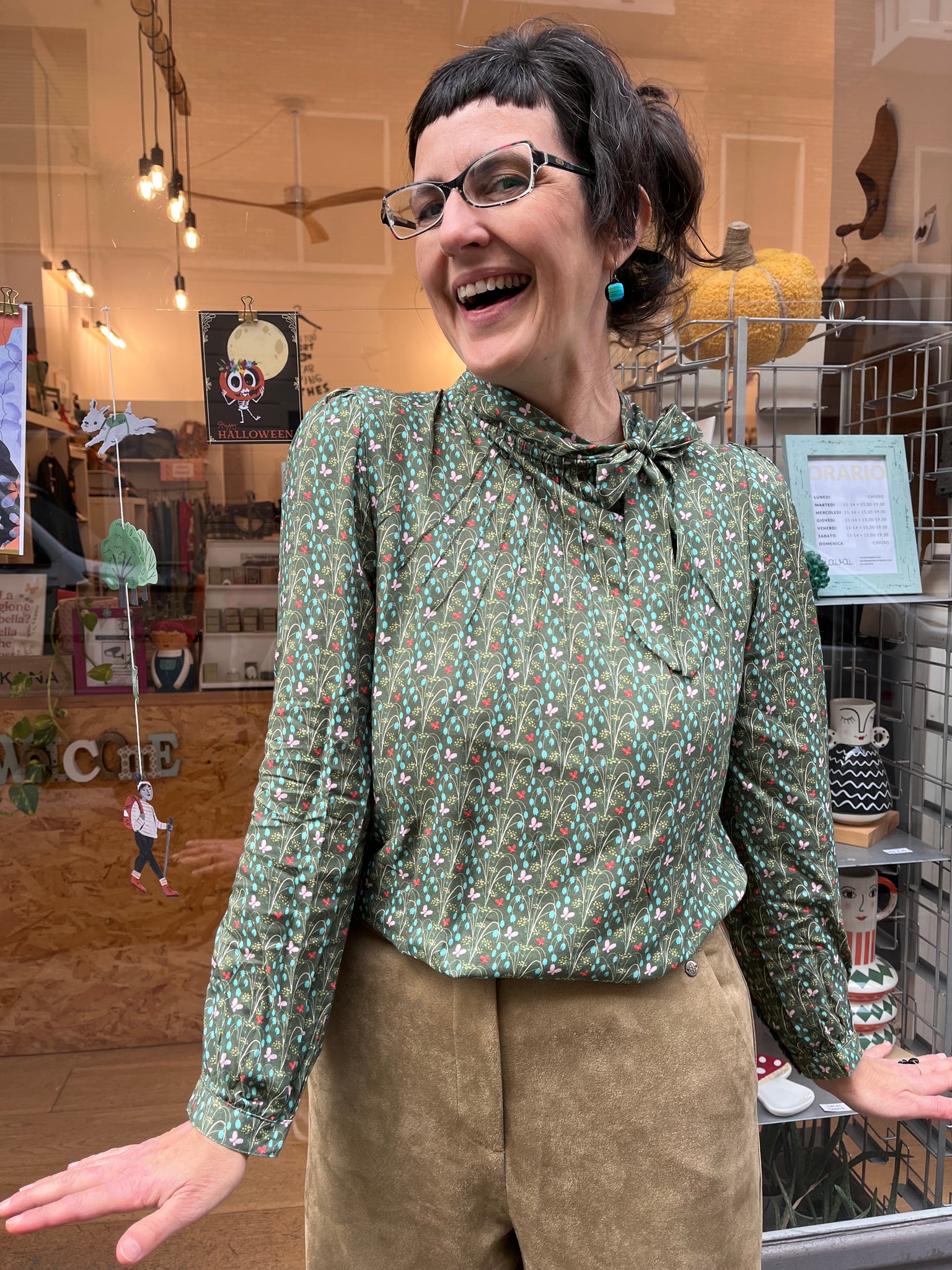 Deliziosa camicetta in ecovero, eco viscosa. Colletto con fiocco, linea leggermente sancrata. Sta bene a tutte le fisicità, valorizza e non segna. Veste regolare: xs 40 - s 42 - m 44 - l 46 - xl 48