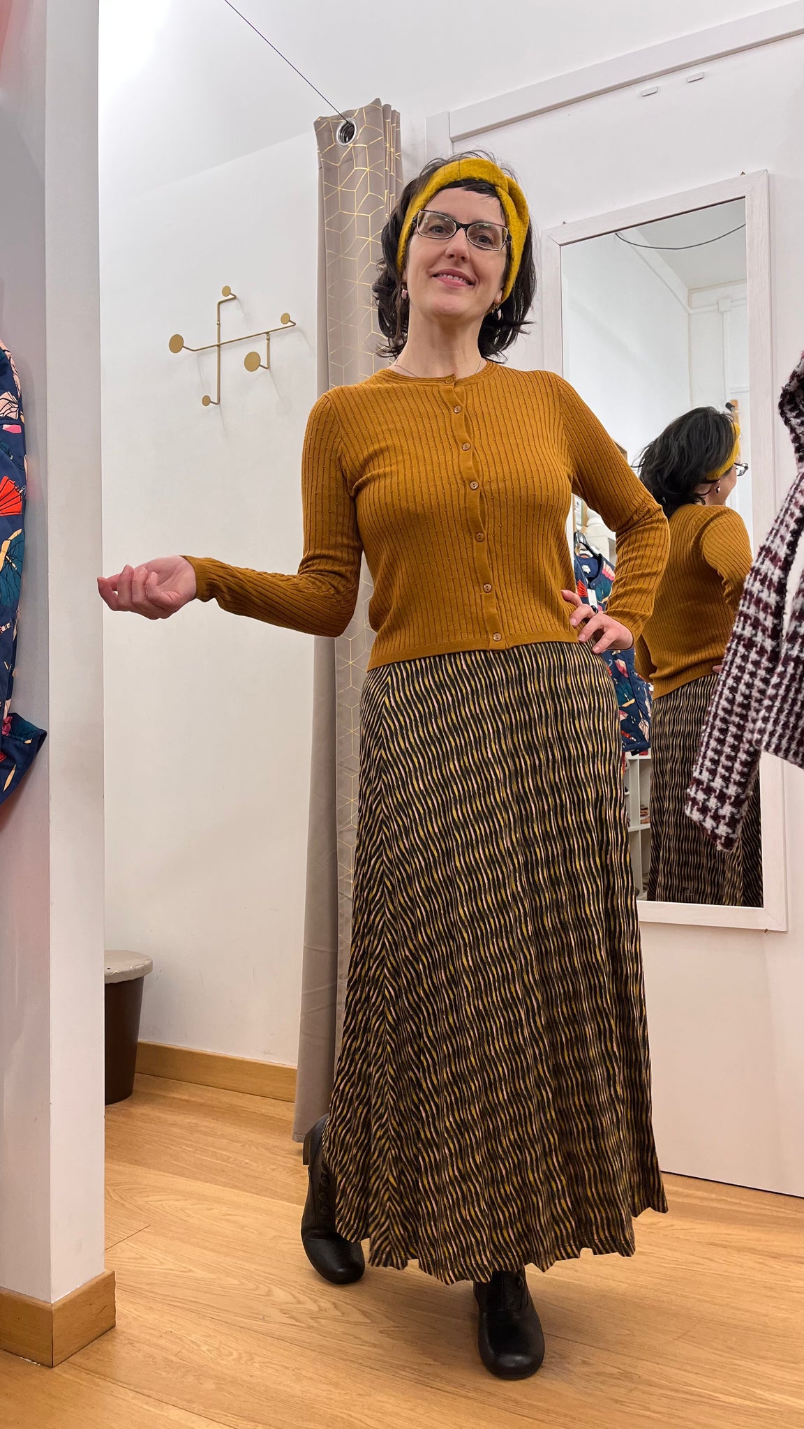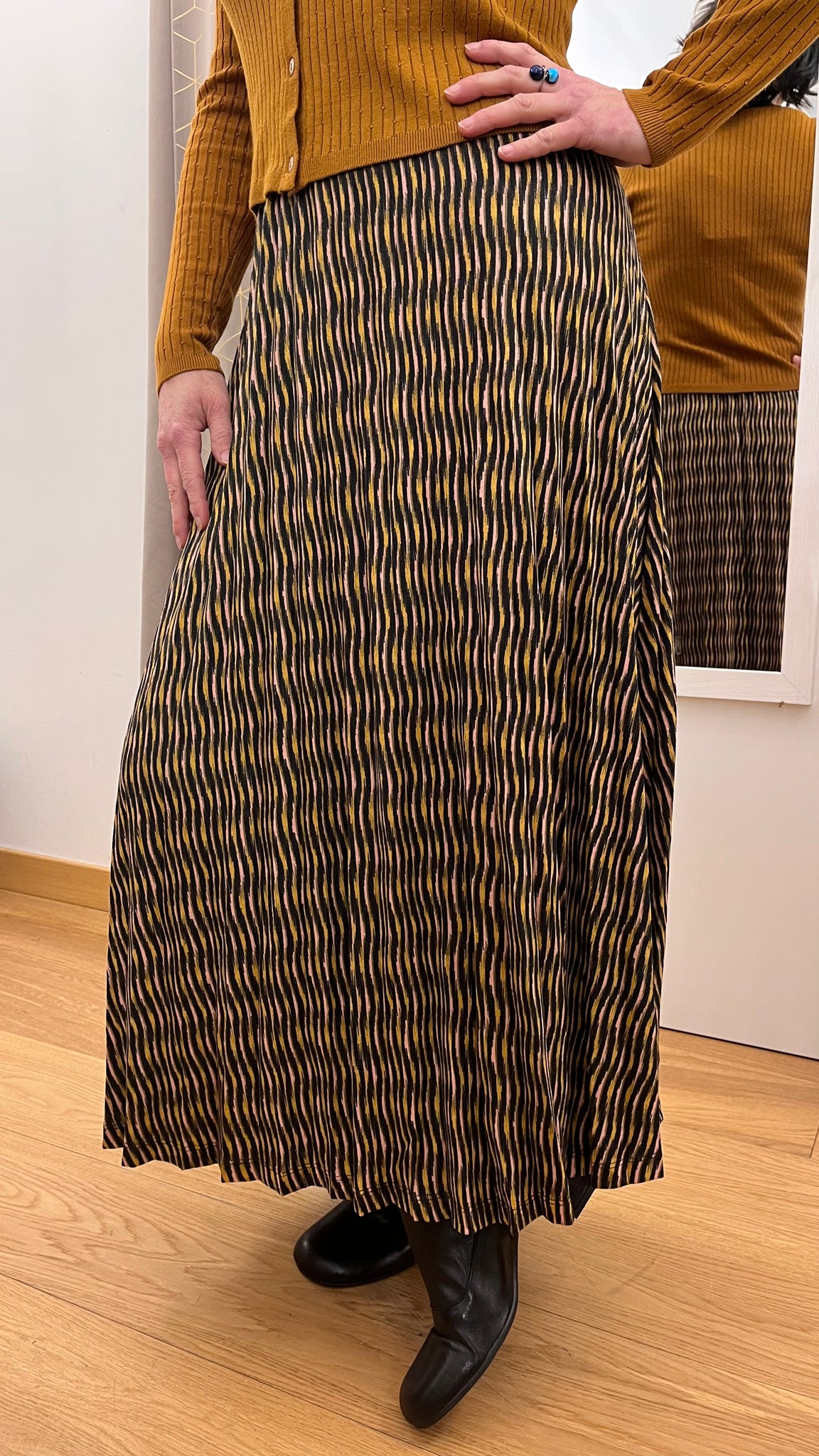 Gonna lunga plissettata in caldo tessuto elasticizzato, perfetta per l'inverno! Elastico in vita, super comfort.