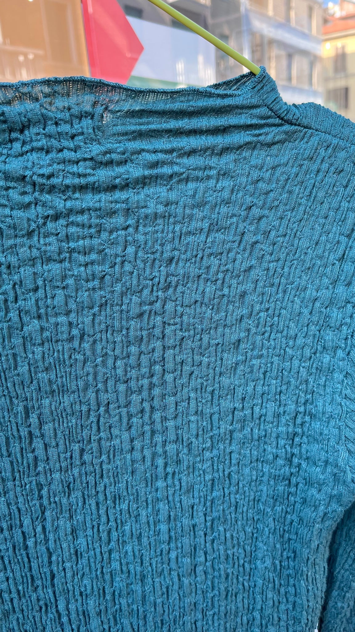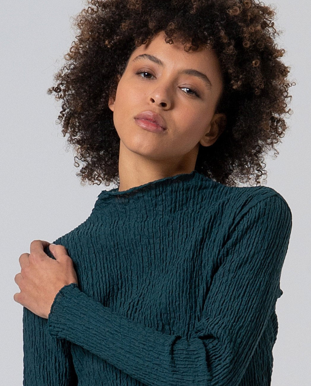 Maglia a manica lunga in misto cotone, tessuto effetto increspato, collo lupetto.