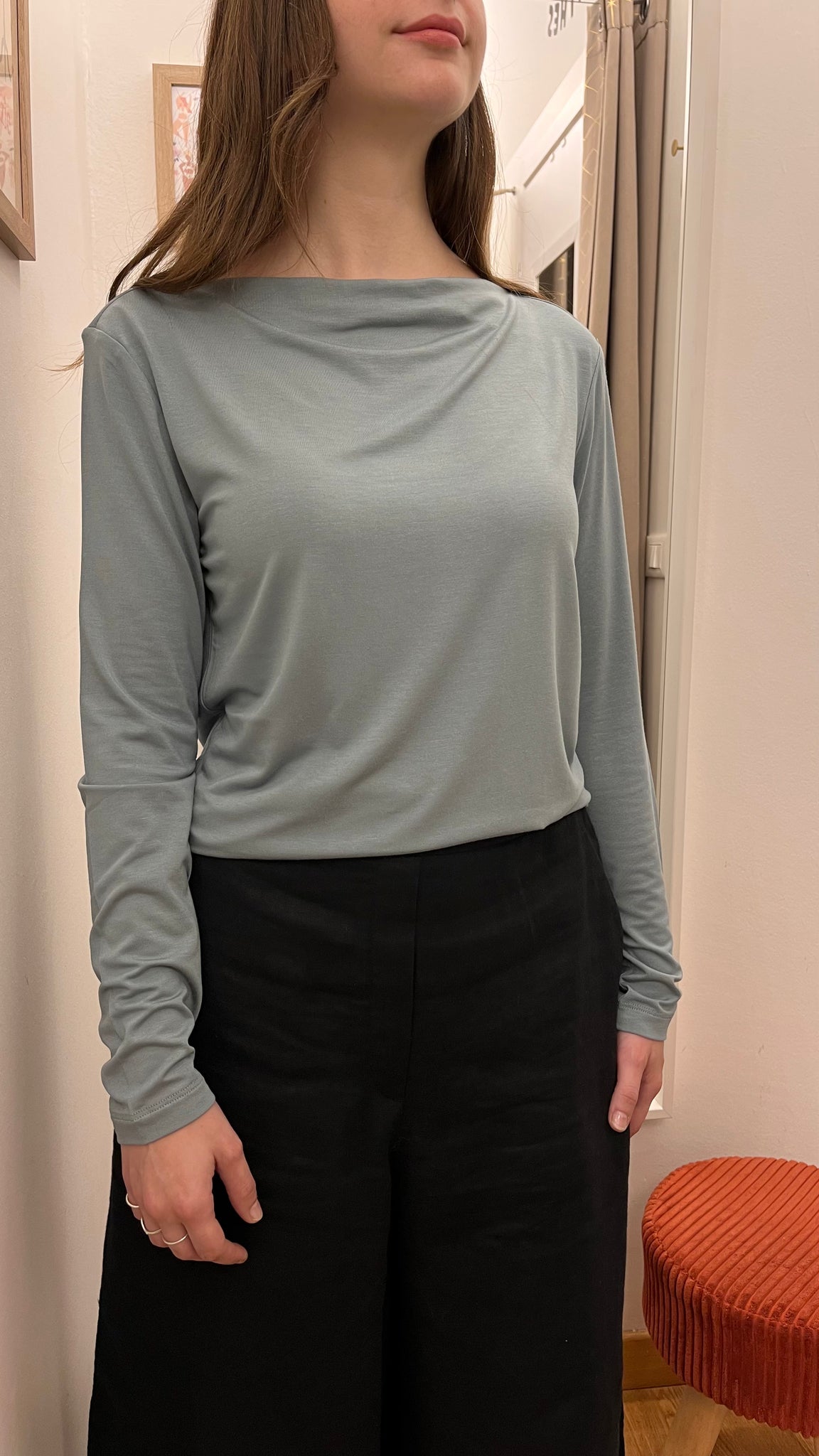 Una morbidissima t-shirt con scollo a barchetta in viscosa di bambù, taglio dritto comodo (non segna).