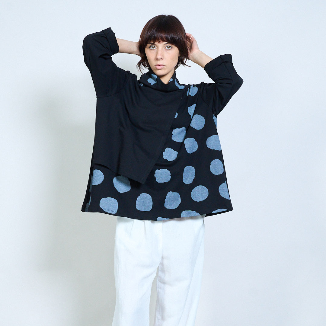 Maglia in cotone elasticizzato del taglio asimmetrico e scampanato, taglia unica in modello oversize che veste tranquillamente fino alla taglia 48!
