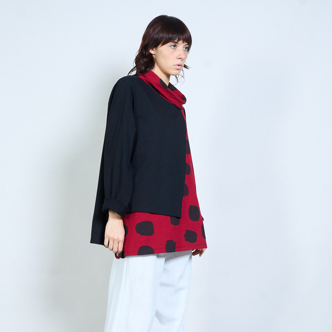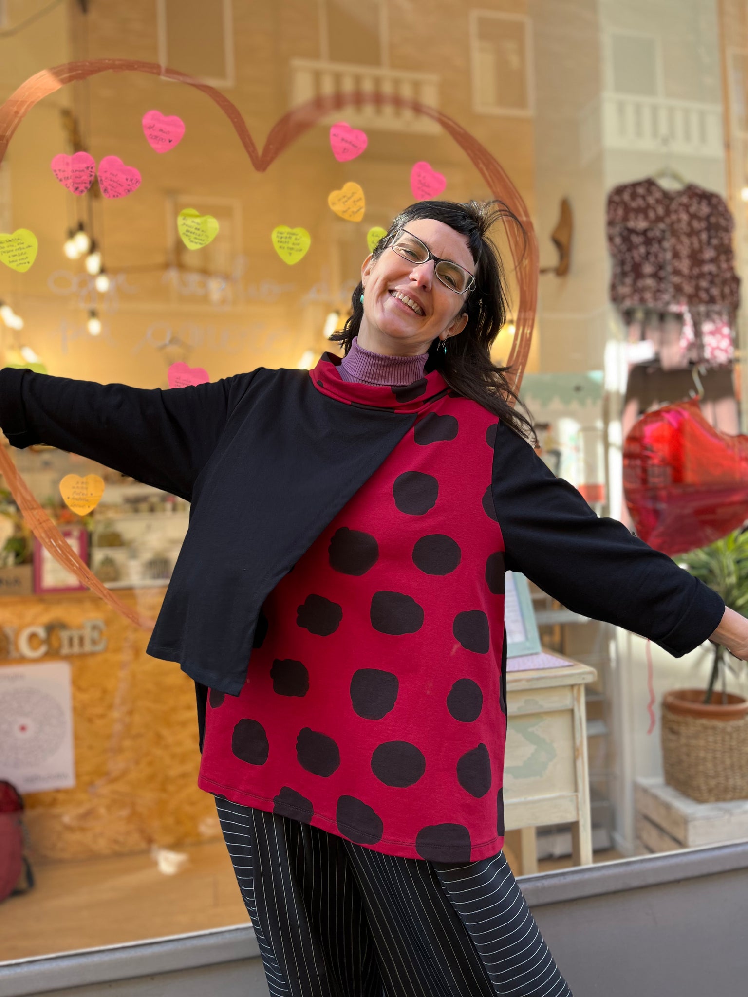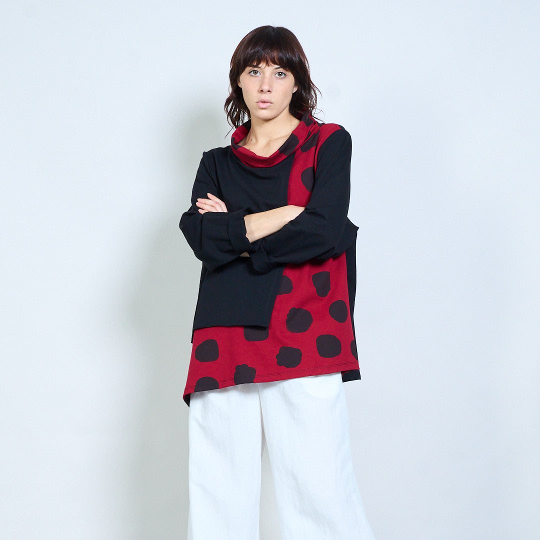 Maglia in cotone elasticizzato del taglio asimmetrico e scampanato, taglia unica in modello oversize che veste tranquillamente fino alla taglia 48!