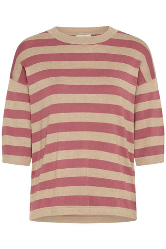 BYoung - Maglia righe mezza manica Rosa e Seppia