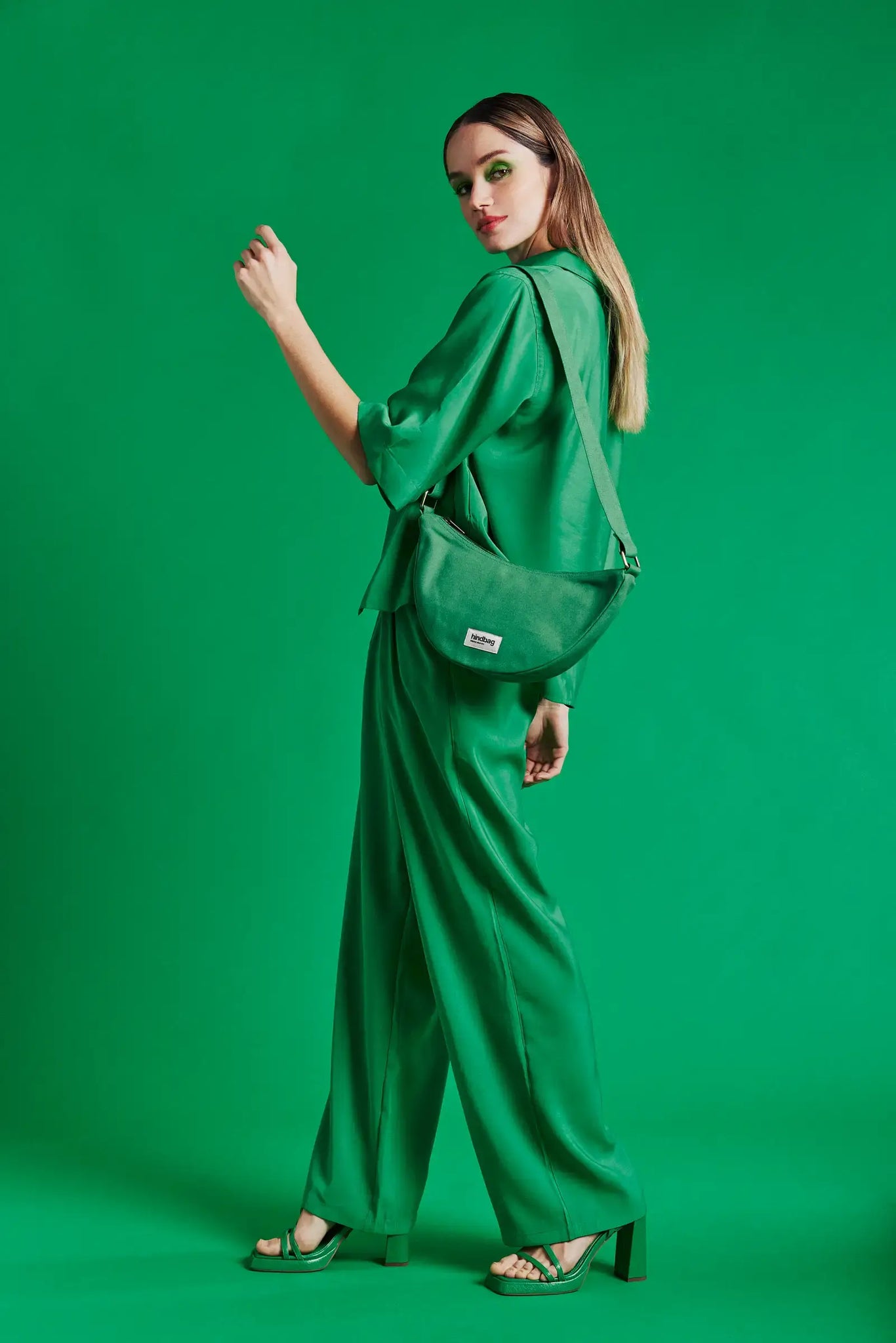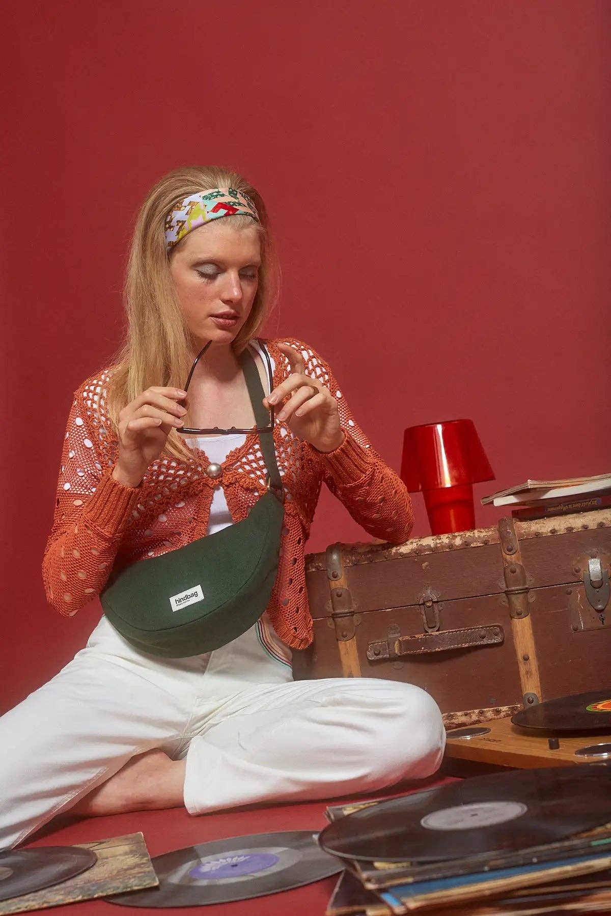 A forma di mezzaluna, la borsa Andrea è a metà strada tra il marsupio e la tracolla. Super pratica con la sua apertura sulla parte superiore e la tasca con zip sul retro. Il suo look si adatta a tutti i desideri. Può essere indossata a tracolla corta o lunga, davanti o dietro, come a spalla. Caratteristiche: * Dimensioni: L32 x H16 x P8 cm * Cotone biologico GOTS spesso e resistente (500g/m2) * Tutte le nostre borse e accessori sono realizzati dalla nostra ONG partner indiana SSMI che lotta per l'emancipazione delle donne di un quartiere svantaggiato di DELHI