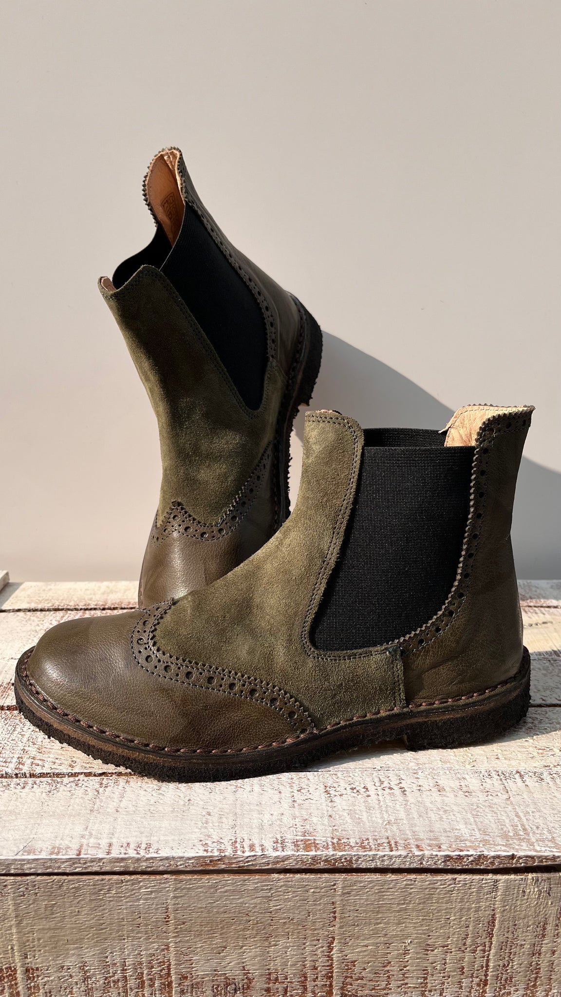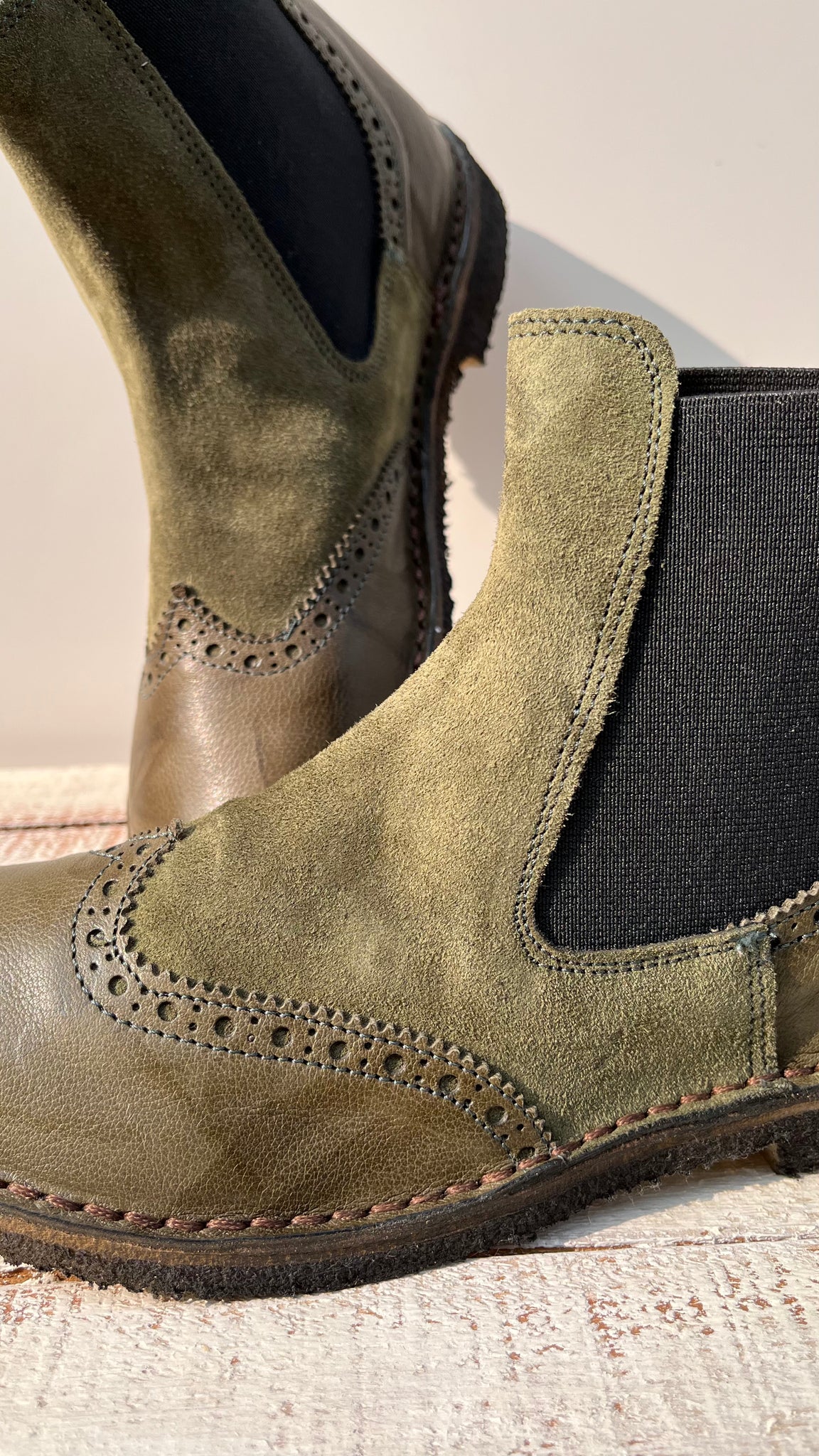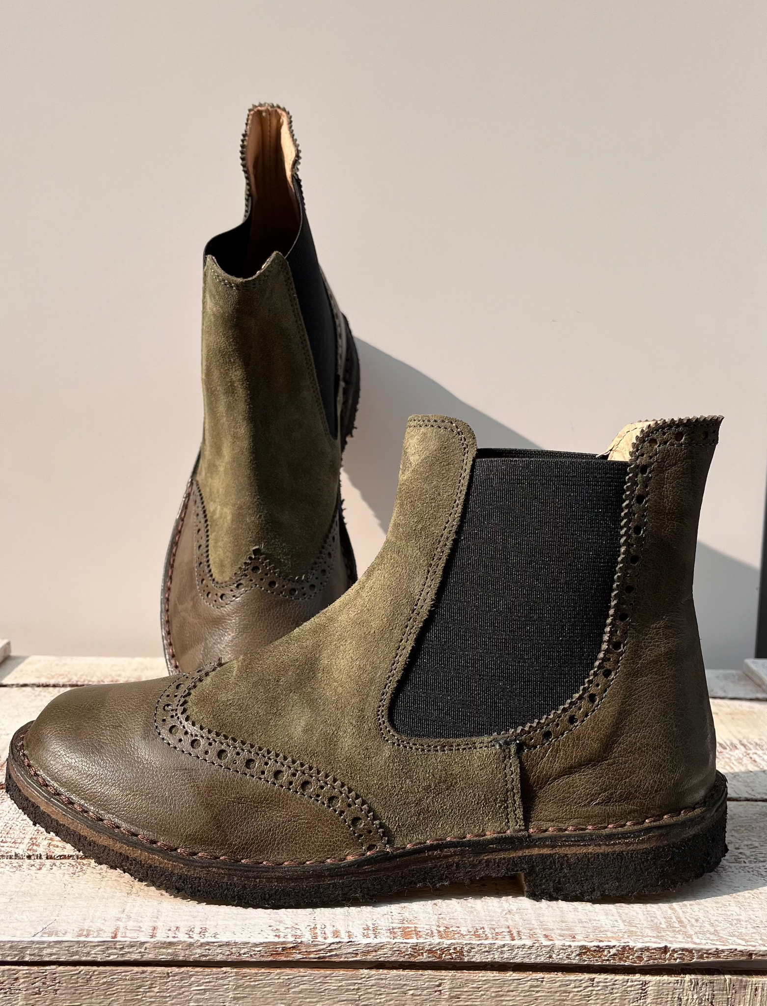 Pelle morbidissima, fatte artigianalmente in toscana, suola in gomma stile clarks. Abbina pelle liscia a scamosciata.