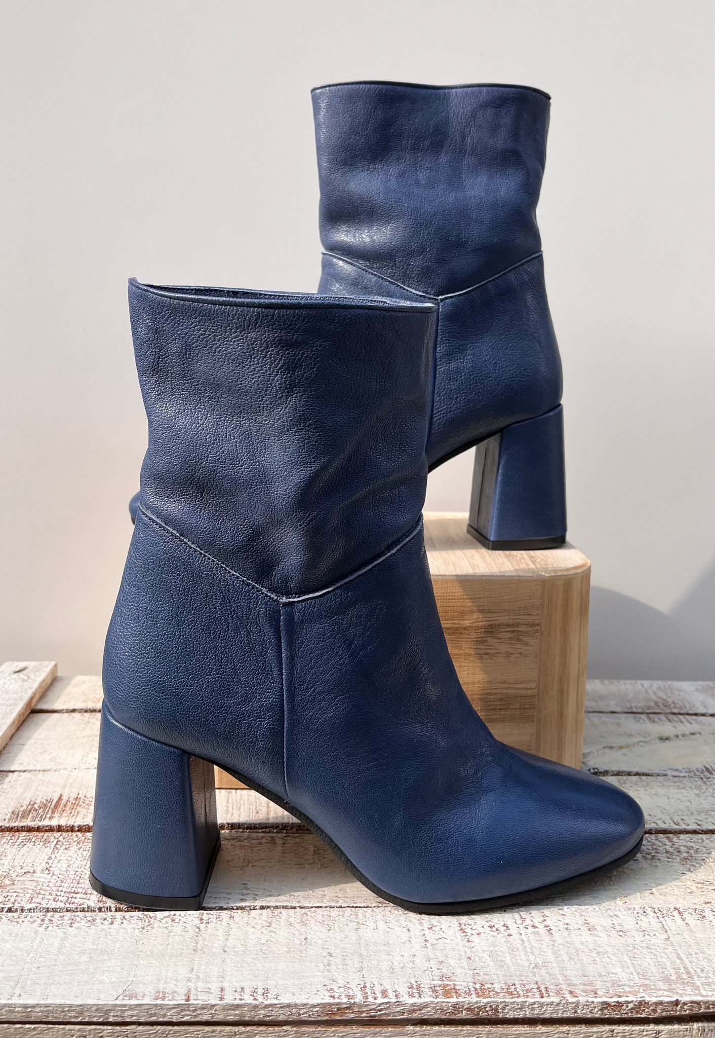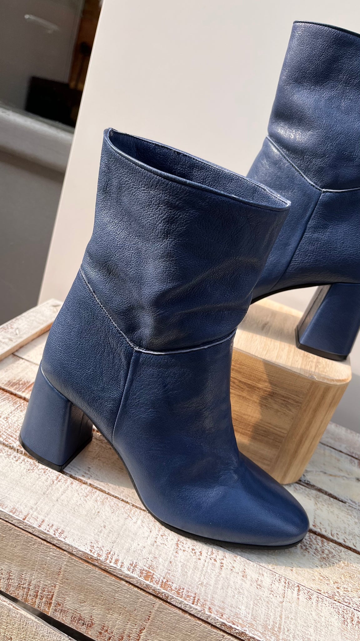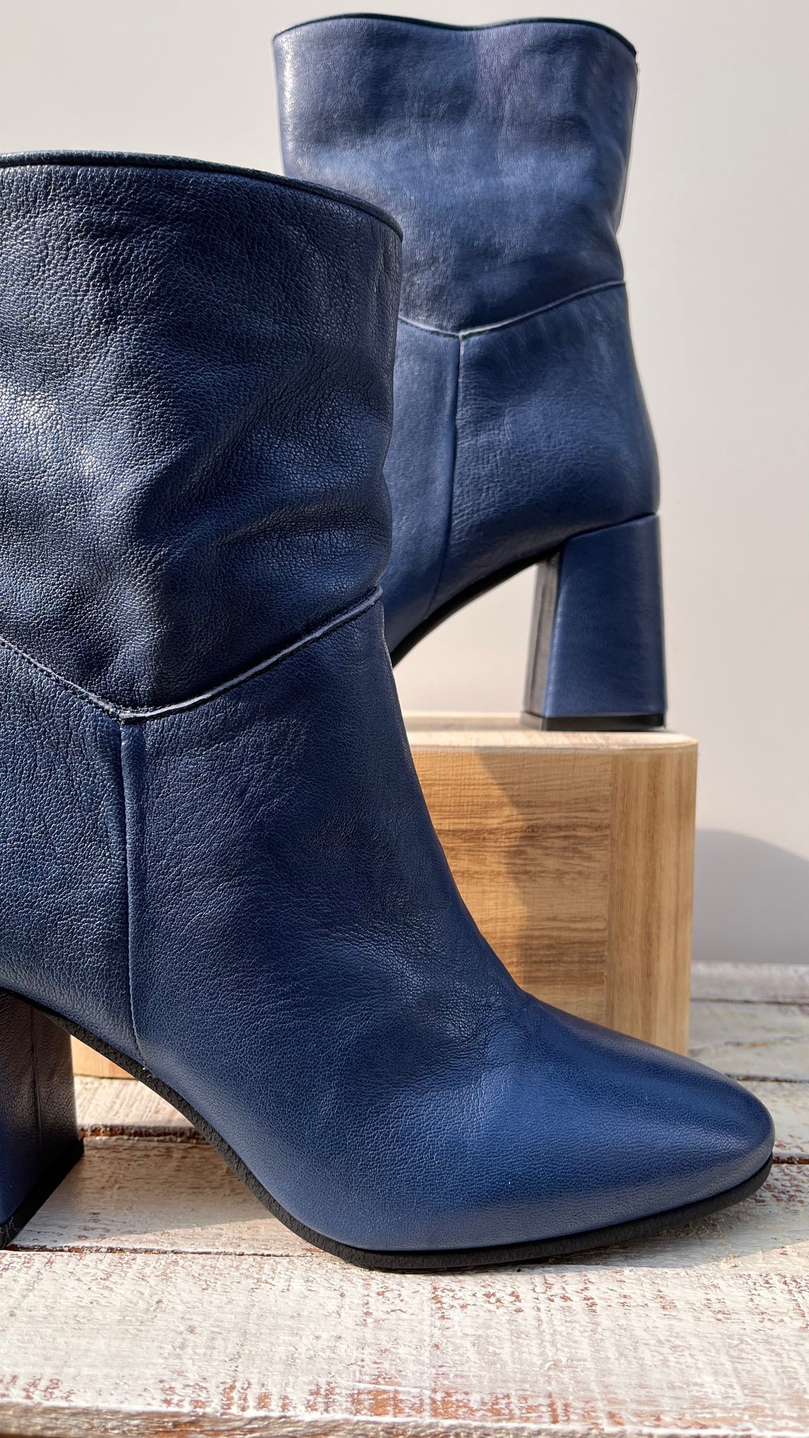 Made in Italy, tacco rettangolare alto cm 7, rivestito in pelle.