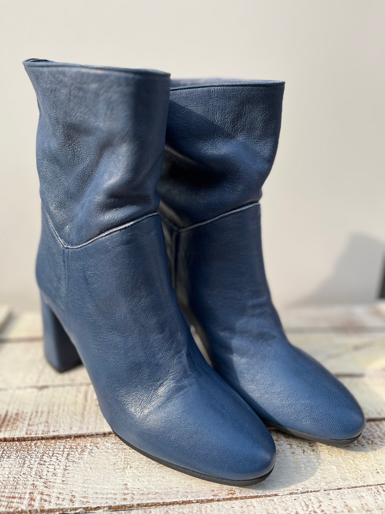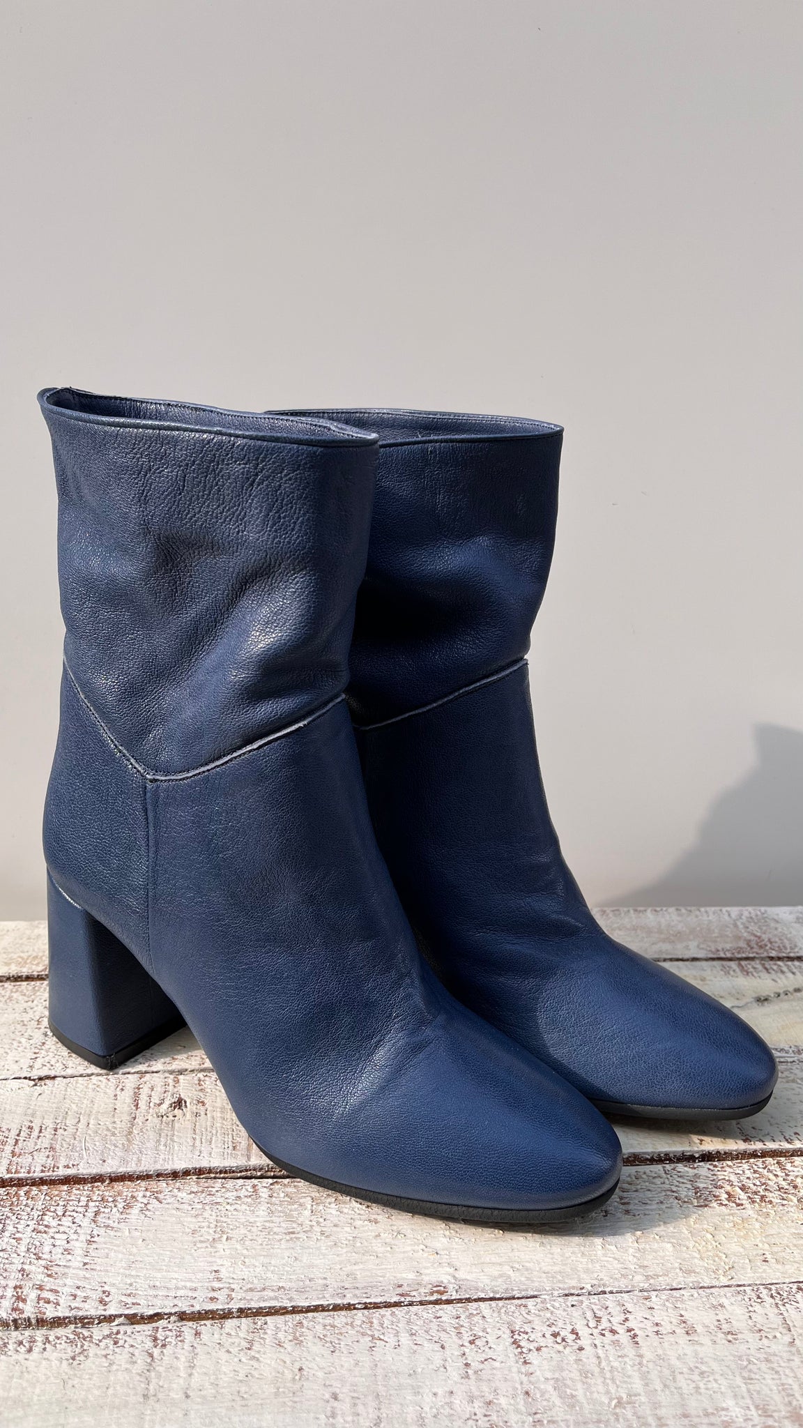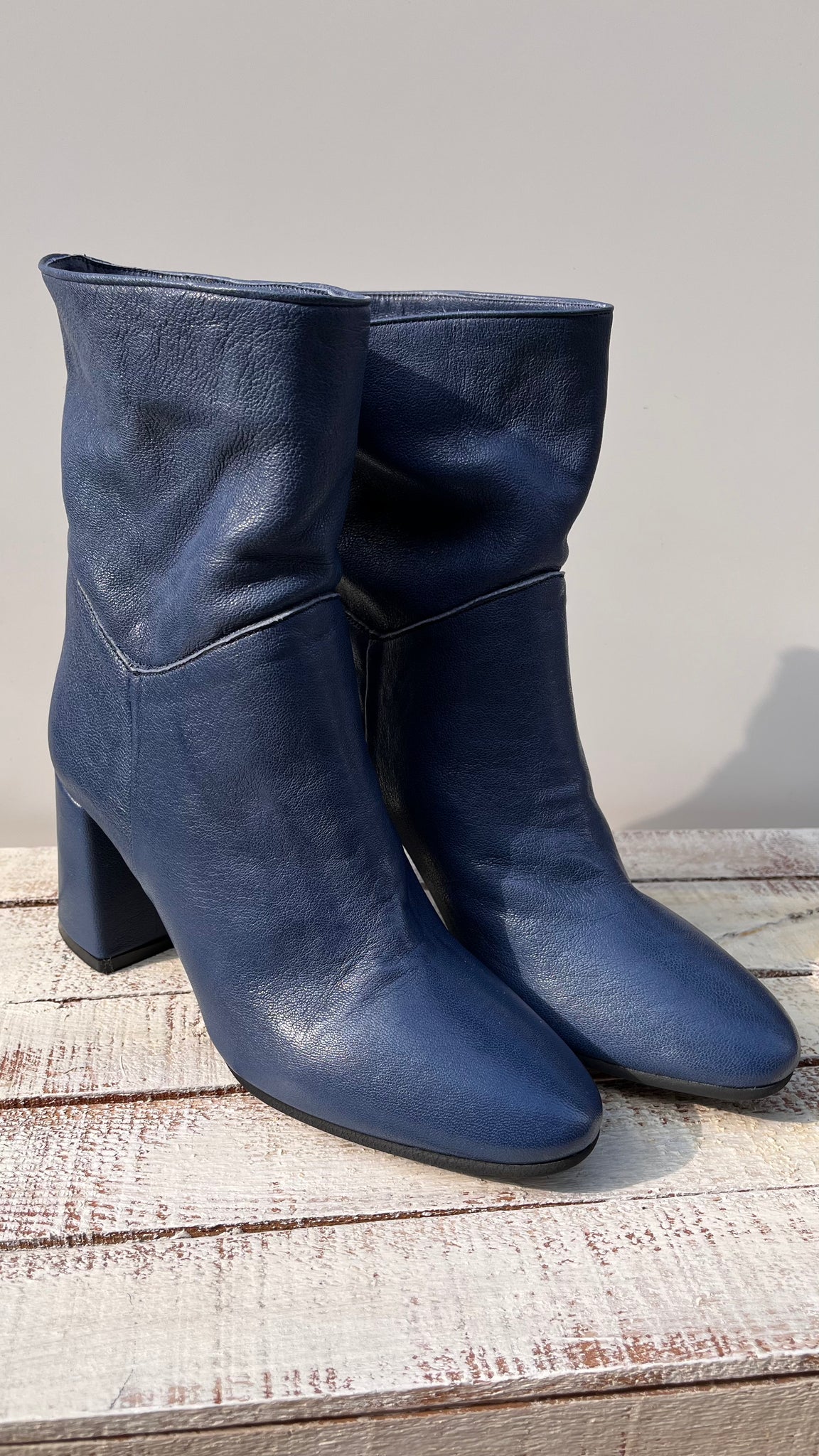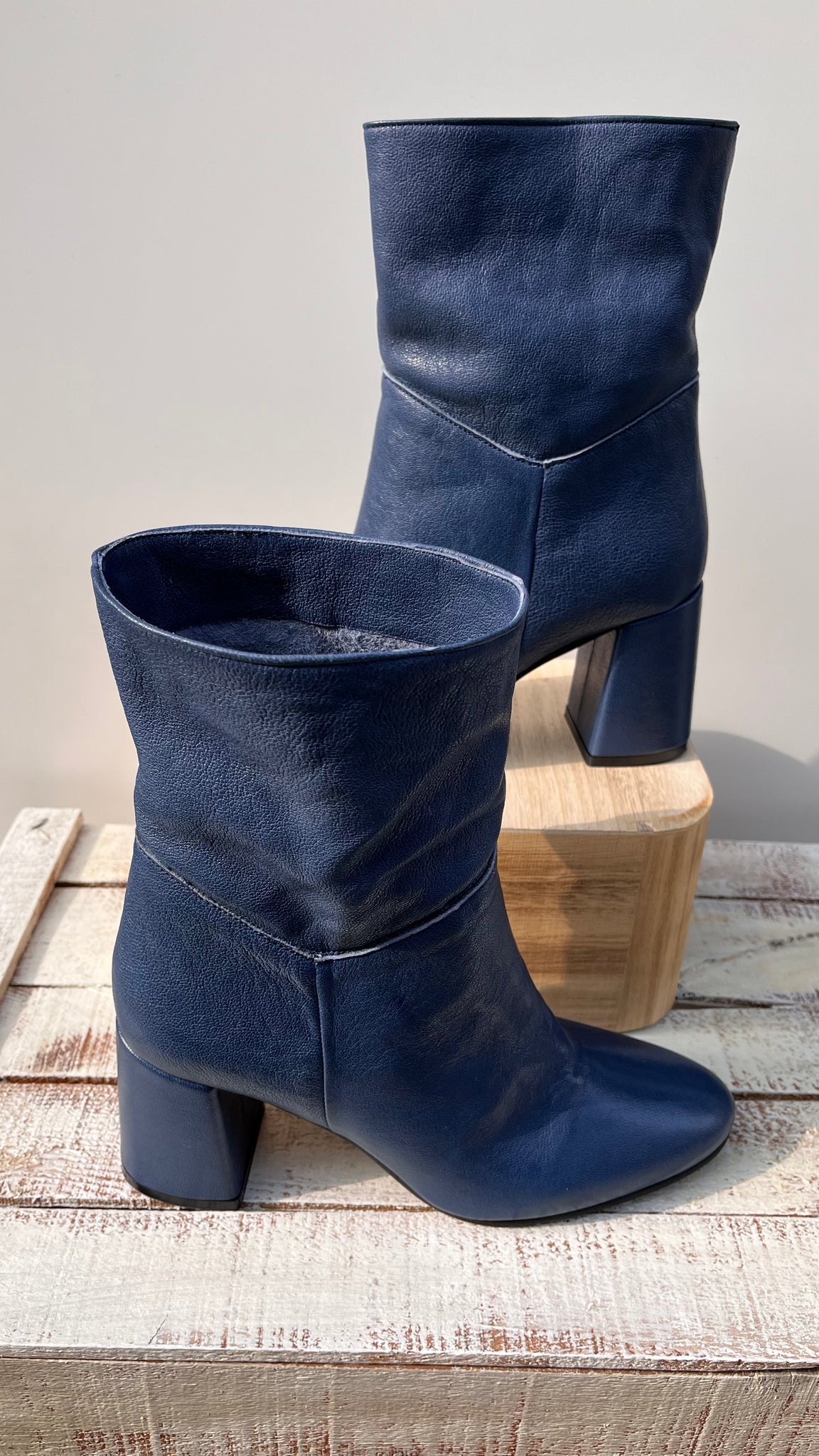 Made in Italy, tacco rettangolare alto cm 7, rivestito in pelle.